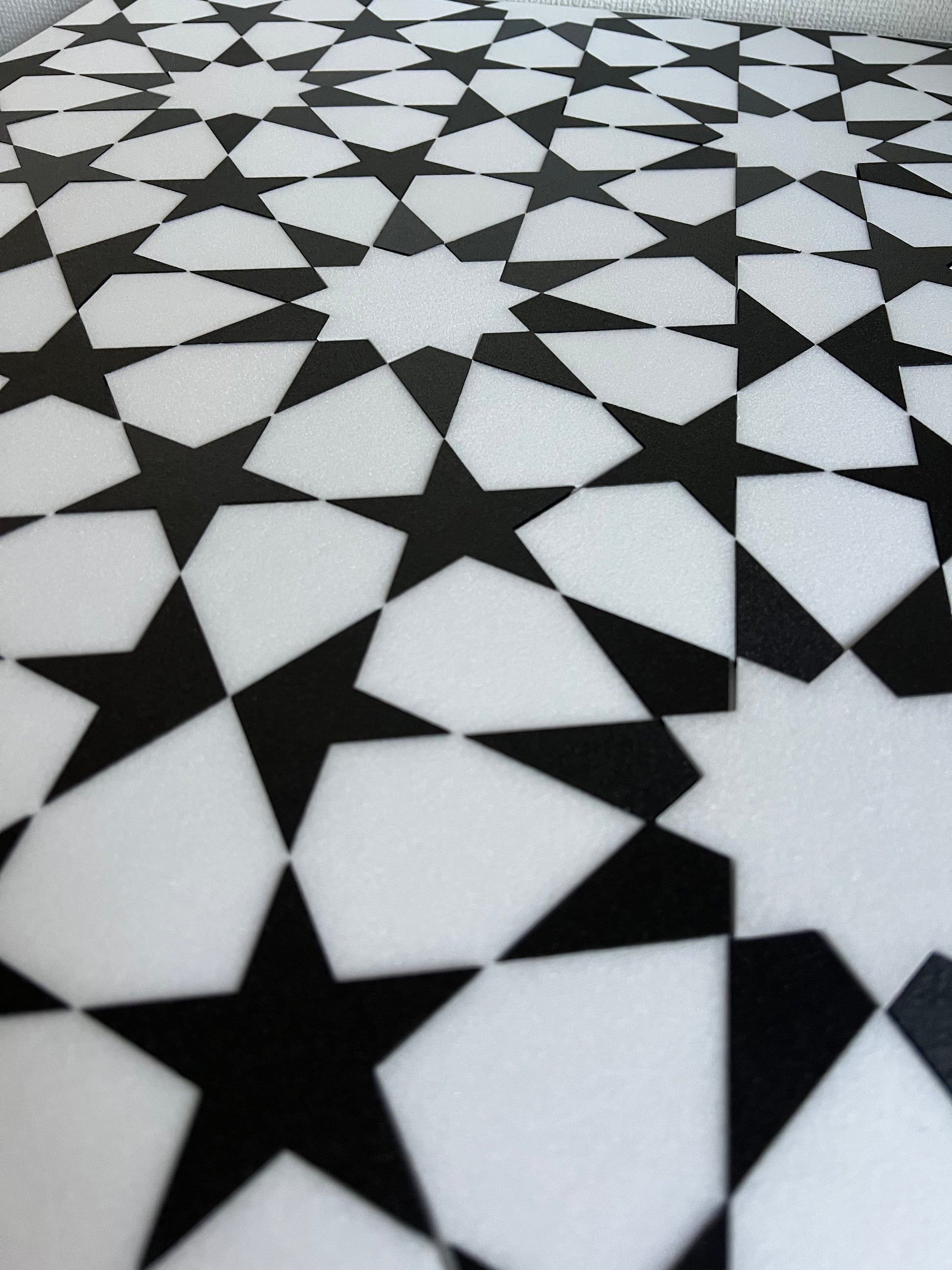 The designs are prepared in a unique traditional way, combining circles and structural lines to form geometric designs. The angles and balance of the components (parts) within each shape are calculated with geometric precision.